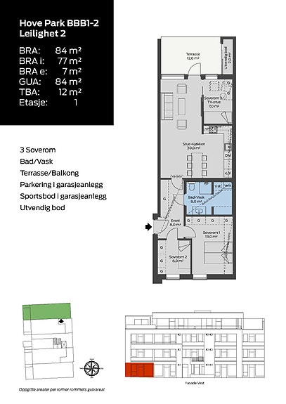 - Eget balansert ventilasjonsanlegg med varmegjenvinning i hver boenhet.