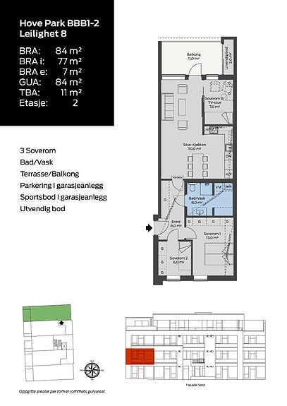 - Eget balansert ventilasjonsanlegg med varmegjenvinning i hver boenhet.
