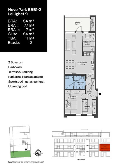 - Eget balansert ventilasjonsanlegg med varmegjenvinning i hver boenhet.