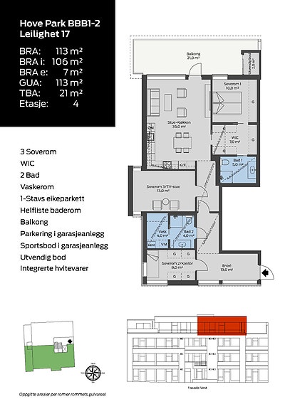 - Eget balansert ventilasjonsanlegg med varmegjenvinning i hver boenhet.