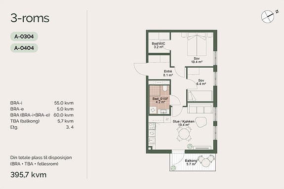 - 55 m² (BRA-i)