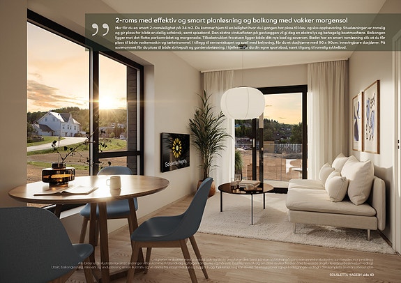 2-roms med effektiv og smart planløsning og balkong med vakker morgensol