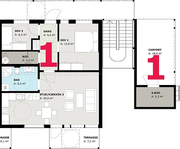 1. etasje - Leilighet 1