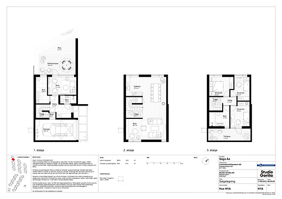 Boligene går over tre plan tre eller fire soverom. Hovedplanet vil bestå av stue og kjøkken, toppetasjen vil bestå av tre soverom og bad. Inngangsplan består av gang, stue/soverom og bad bod/vaskerom. Fra parkeringen vil det være en sluse rett inn til boligen med enkel og praktisk tilgang til og fra bilen.