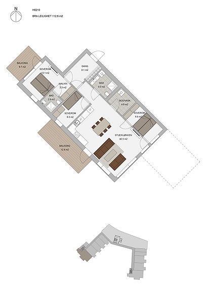 Nå har du muligheten å sikre deg en splitter ny leilighet med en sentral beliggenhet i Alta sentrum og samtidig med en flott utsikt over Altadalen. Boligdelen i B8-prosjektet består av 40 moderne leiligheter som har gangavstand til alt av sentrumsfasiliteter. Fra din egen balkong kan du nyte nordlysets magiske dans på vinterhimmelen, og når solen endelig vender tilbake etter mørketiden i januar, er dette en av de første tomtene i Alta hvor solen skinner. Leilighetene er plassert i plan 2, 3, 4 og 5 i et kombinasjonsbygg med næring - hvorav flere av leilighetene i 2.etasje disponerer hver sin romslige terrasseplatt. Boligene er i fem ulike størrelser, og spenner fra smarte 2-roms til romslige 4-roms enheter, alle med moderne planløsninger som kombinerer funksjonalitet og estetikk. De største leilighetene vil også ha mulighet som tilvalg for en egen hybel, som kan gi gode ekstrainntekter. Leilighetene har innglasset balkong.