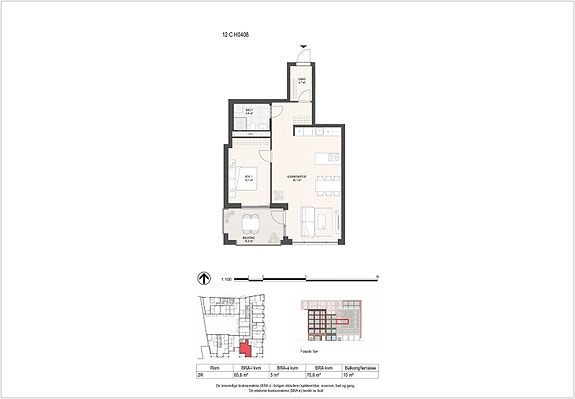Stor 2-roms hjørneleilighet med utsikt over byen. Entre med plass til garderobe. Romslig soverom og åpen løsning mellom stue og kjøkken. Kjøkkenøy deler stue og kjøkken på en naturlig måte. Sørvendt