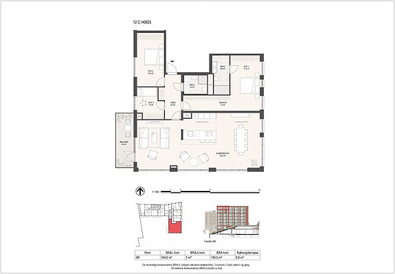 Fantastisk toppleilighet i 8. etasje med store vindusflater som virkelig byr på panoramautsikt over byen. Leiligheten har et sjenerøst allrom med åpent og sosialt kjøkken og flere naturlige soner for sittegrupper. Soveromsfløy med romslig bad og rikelig med plass til garderobeløsning. Vestvendt balkong, 3 soverom og 2 bad.