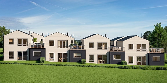 Dette huset ligger helt til høyre i rekken med hage på 123 m²