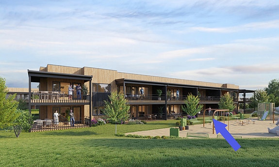 Svært enkel adkomst til leilighetene på flat tomt. Offentlig vei frem til tomten. Leiligheter i 2. etasje med adkomst via trappehus med løfteplattform, i tilllegg til utvendig adkomst til svalgang.