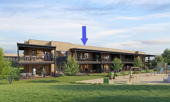 Svært enkel adkomst til leilighetene på flat tomt. Offentlig vei frem til tomten. Leiligheter i 2. etasje med adkomst via trappehus med løfteplattform, i tilllegg til utvendig adkomst til svalgang.