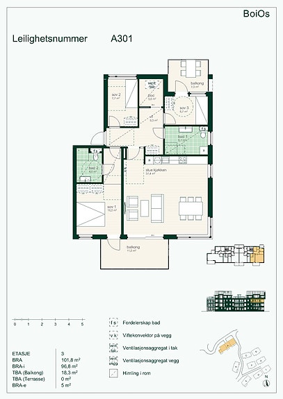TBA: Terrasse- og balkongareal - oppgis ved salg, men inngår ikke i BRA.