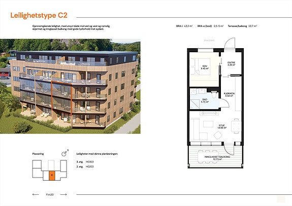 Leiligheten markert i bygget