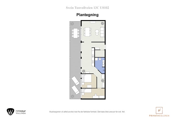 Vedlagte plantegninger er ikke målbare, og oppgitte arealer er hentet fra vedlagt tilstandsrapport. Arealene er plassmålt og beregnet med utgangspunkt i NS 3940:2023.