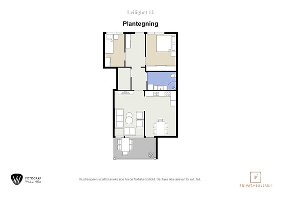 Vedlagte plantegninger er ikke målbare, og oppgitte arealer er hentet fra vedlagt tilstandsrapport. Arealene er plassmålt og beregnet med utgangspunkt i NS 3940:2023.