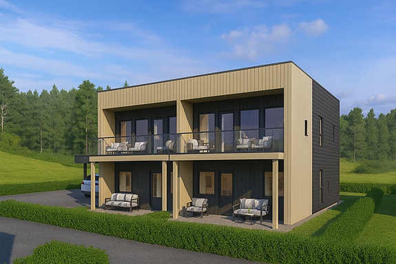 • Utvendig kledning er grunnet, og krever etterbehandling av kjøper
