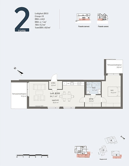 Ny 2 roms leilighet med to terrasser på tilsammen 17 kvm