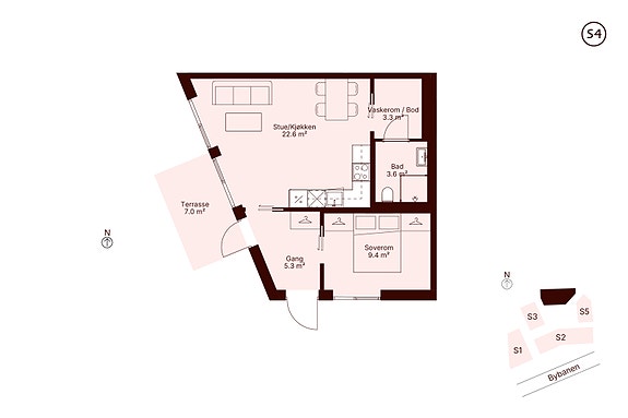 Vi har nå for salg trinn 3 som består av bygg S5: S5 består av 23 enheter i bygg som går over 4 hovedplan.