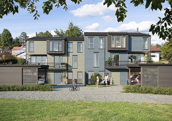 I prosjektet har arkitekten fått i oppdrag å utforme fasader som skiller seg ut og gir prosjektet et unikt uttrykk sammenlignet med tradisjonelle småhusprosjekter. Det legges stor vekt på romslige og brukervennlige oppholdsrom som gir høy bokvalitet.