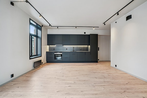 Leiligheten er en del av prosjektet i Kirkegata 3, hvor den ærverdige bygården har blitt satt til liv igjen og i dag huser ti nyrenoverte eierseksjoner og en næringsseksjon.
