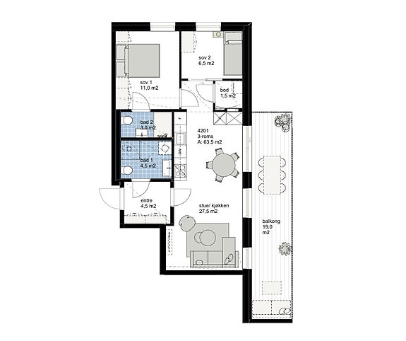- Leilighet
