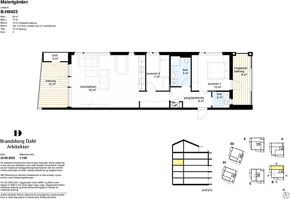 BRA - Boligens bruksareal (summen av BRA-i, BRA-b og BRA-e)