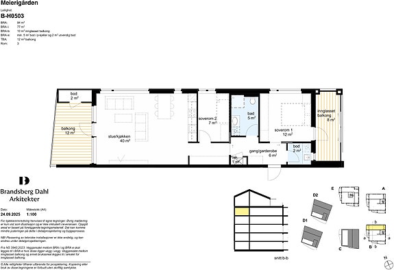 BRA - Boligens bruksareal (summen av BRA-i, BRA-b og BRA-e)