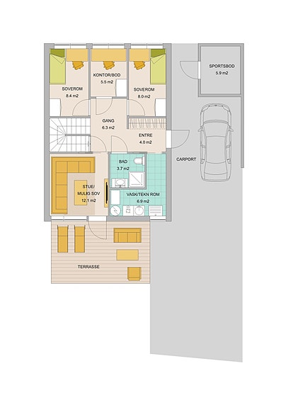 Nye tomannsboliger i Gaupestien med smarte løsninger, store vinduer og solrike uteplasser. 118 m² BRA, sørvendt balkong og terrasse samt carport med bod. Kort vei til skole, barnehage, idrettsanlegg og fine turstier.