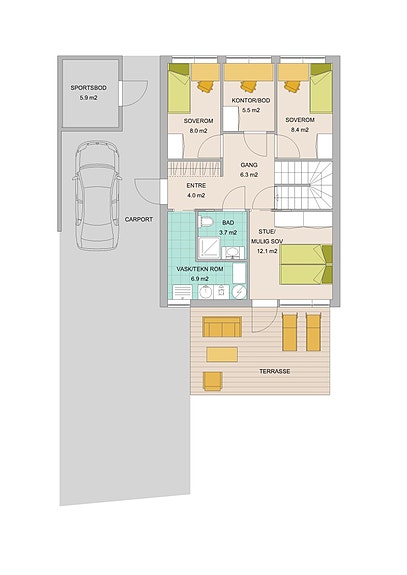 Nye tomannsboliger i Gaupestien med smarte løsninger, store vinduer og solrike uteplasser. 118 m² BRA, sørvendt balkong og terrasse samt carport med bod. Kort vei til skole, barnehage, idrettsanlegg og fine turstier.