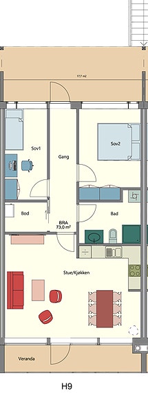 Moderne og arealeffektive leilighet med fleksibel planløsning som utnytter arealet på en effektiv måte, og gir deg følelsen av komfort.