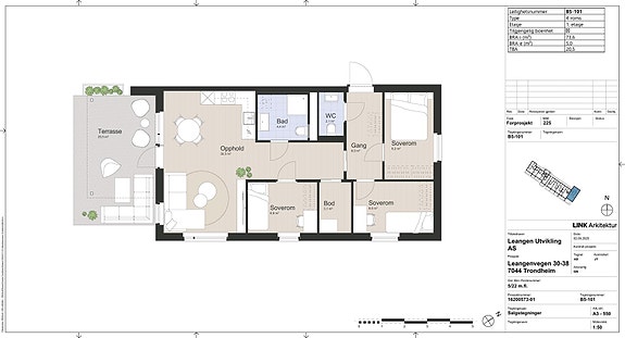 Velkommen til TUN32 - Et nytt og spennende boligprosjekt midt i hjertet av Leangen! Her bor du med bypuls og grøntliv side om side - med butikk og kollektivtilbud bare et steinkast unna. I direkte tilknytning til TUN32 etableres det en ny og felles park - Louiseparken, som vil være en forlengelse av de flotte uteområdene prosjektet allerede har.