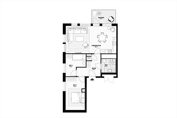 Moderne 3-roms topp- og hjørneleilighet med entré/gang med avsatt plass for garderobe. Leiligheten får en stor stue med kjøkken i åpen løsning hvor du enkelt får plass for både spisestuen og sofagruppe. To soverom hvorav hovedsoverom med plass for dobbeltseng og nattbord på hver side samt avsatt plass for garderobe. Moderne flislagt bad med wc, servant, dusj og opplegg for vaskemaskin. Fra stue er det utgang til balkong på 7 kvm.