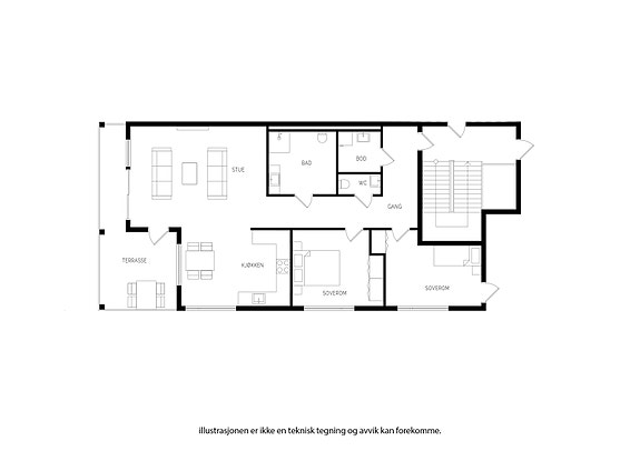 2 soverom, god størrelse på stue/kjøkken, separat vaskerom og ekstra gjestetoalett er kvaliteter mange ønsker.