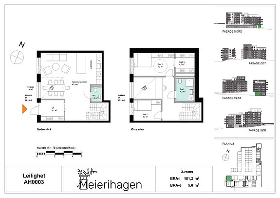 - Leilighet AH0003 på 101,2 kvm BRA-i går over to plan