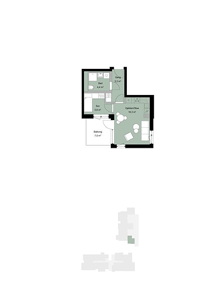 2-roms leilighetene har en arealeffektiv og funksjonell planløsning, og inneholder: