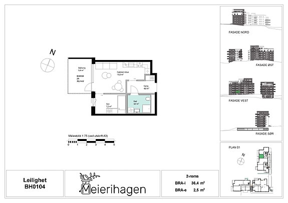 2-roms leiligheter - fra 36,4 kvm til 89,1 kvm BRA-i