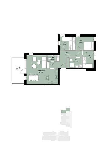 3-roms leilighetene passer godt for unge par eller små familier, og inneholder: