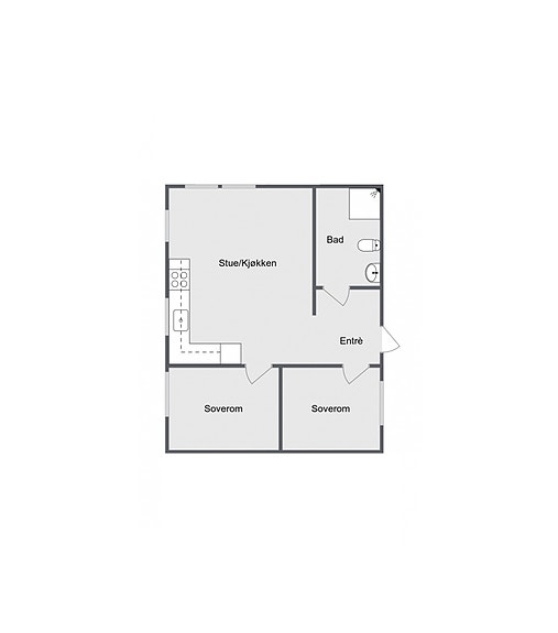 Leiligheten ligger i 1. etasje mot vest og inneholder gang, 2 soverom, bad, samt stue og kjøkken i åpen løsning med utgang til uteplass.