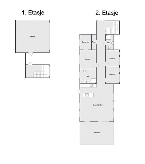 Plantegning 2. etg inkl inngangsparti i 1. etg. Merk at garasjen eventuelt er tilvalg