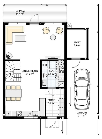 Vi legger nå ut våre største enheter i prosjektet der vi har stue/kjøkken løsning i 1.etasje. Boligene har 4 soverom. Det betales kun 50.000 før overtakelse.