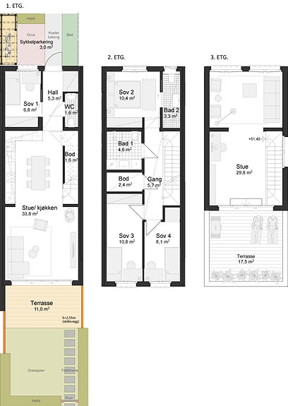 Lekker 3-plans rekkehus med flott takterrasse, åpen stue- og kjøkkenløsning med direkte utgang til terrasse med hage. Det er 4 soverom, to bad og wc. Balansert ventilasjon sørger for godt inneklima og lave kostnader til oppvarming. Ny bolig kommer med fem års reklamasjonsrett og oppfølging fra utbygger. Boligen selges inkl. 1 parkeringsplass. Forutsatt ledige plasser kan ekstra parkeringsplass i garasjekjeller kjøpes. Ta kontakt med selger for mer informasjon.