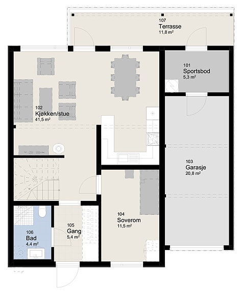 På flere av våre boligprosjekt kan det tilrettelegges for en praktisk og attraktiv hybelleilighet i underetasjen.