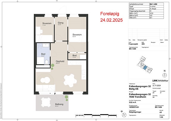 Velkommen til TUN32 - Et nytt og spennende boligprosjekt midt i hjertet av Leangen! Her bor du med bypuls og grøntliv side om side - med butikk og kollektivtilbud bare et steinkast unna. I direkte tilknytning til TUN32 etableres det en ny og felles park - Louiseparken, som vil være en forlengelse av de flotte uteområdene prosjektet allerede har.