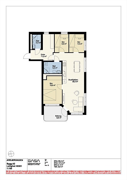- 91 m² (BRA-i)