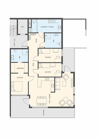 - Balansert ventilasjon med varmegjenvinning i hver leilighet.