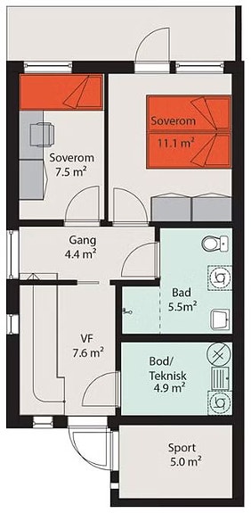 Enhetene i tomannsboligen er på 110 kvm BRA med mulighet for inn til 3 soverom, egen carport med bod, samt sportsbod i tilknytting til inngang.
