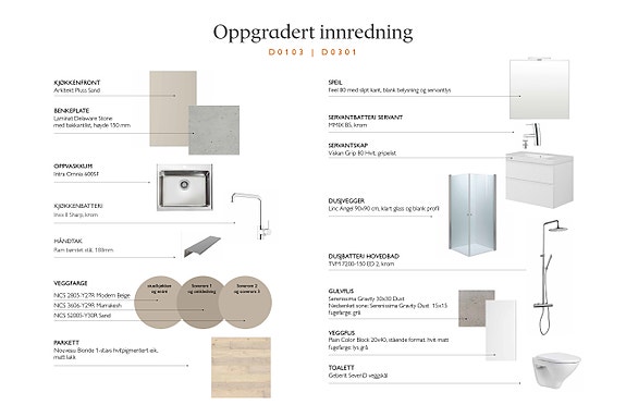 • Skyvedørsgarderobe inkludert på hovedsoverom eller i entré