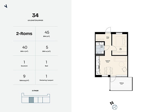 Lindøkki leil. 34 | 2-roms leilighet med carport