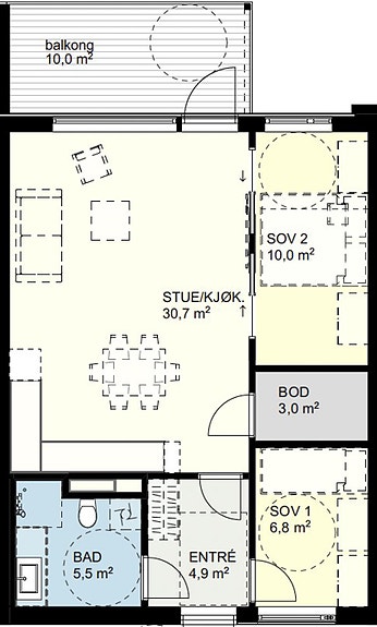 Alle leiligheten har ekstern bod i tillegg.