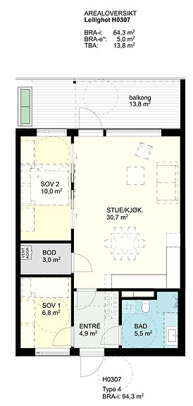 Alle leiligheten har ekstern bod i tillegg.