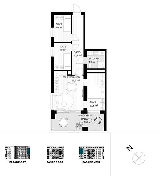 3-roms leilighet med innskudd fra 1 596 000,- (uten BoStart)